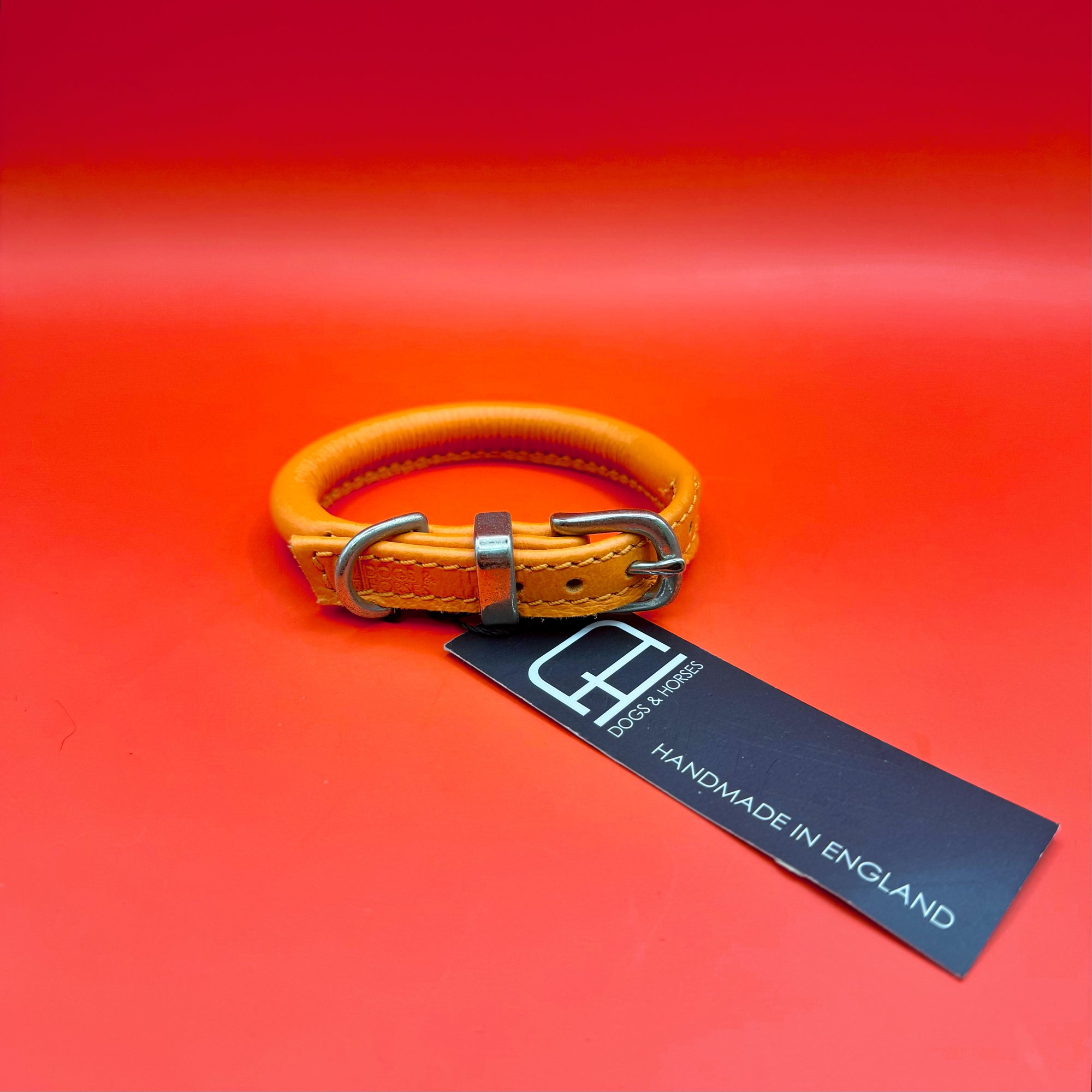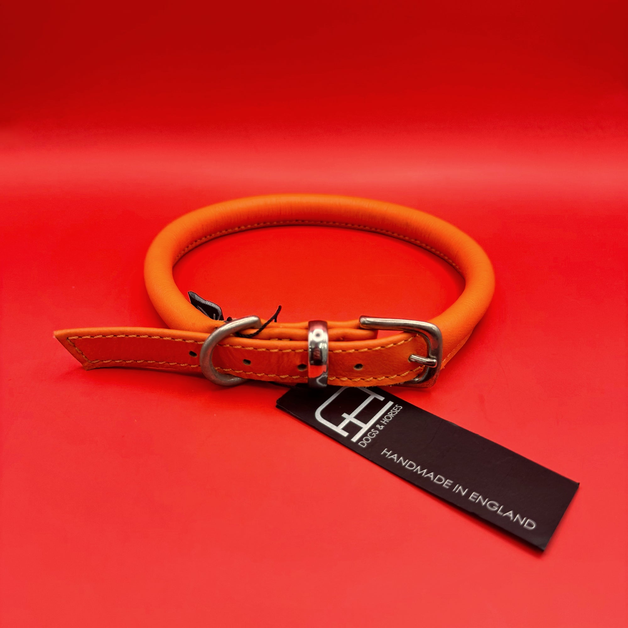 Rolled Soft Leather Dog Collar - Orange